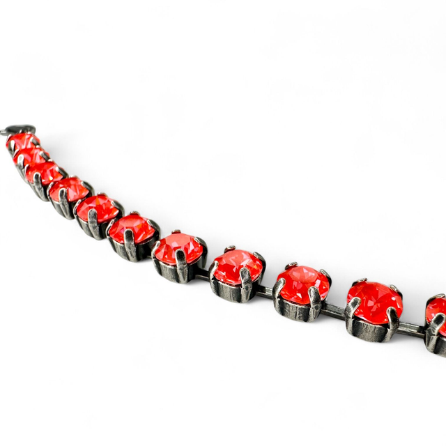 Armband DEVA KLASSIK, ca. 15,5 cm + Verlängerung mit handgesetzten Glaskristallen 6mm im Brillantfacettenschliff, Farbe: Electric Orange Ignite in antikversilberter Fassung, hell