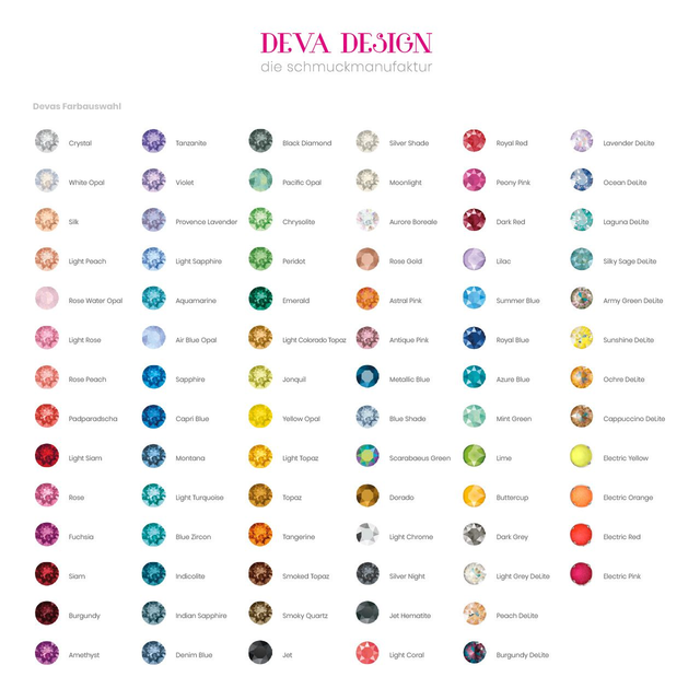 Gerne fertigen wir Ihnen dieses Armband auch individuell in Ihrer Wunschfarbe an - wählen Sie diese von Devas Farbtabelle aus und schicken Sie Ihre Anfrage direkt an unser Atelier