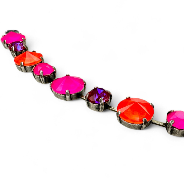 Armband RIVOLI 39, ca.16,5 cm + Verlängerung mit handgesetzten Chaton-Steinen 8 mm im Wechsel mit Rivoli Solitären, Farbe Black Beauty, Schwarz, in antikversilberter Fassung, hell - Deva Design Schmuck ist nickelfrei - enjoy the beauty!