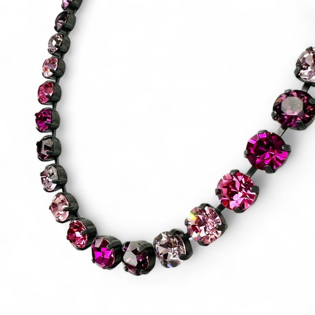 Collier DEVA KLASSIK, Länge einstellbar 38 - 46 cm mit handgesetzten Glaskristallen 8 mm im Brillantfacettenschliff, Farbe: Pink Farbverlauf in antikversilberter Fassung, dunkel - Deva Design Schmuck ist nickelfrei - enjoy the beauty!