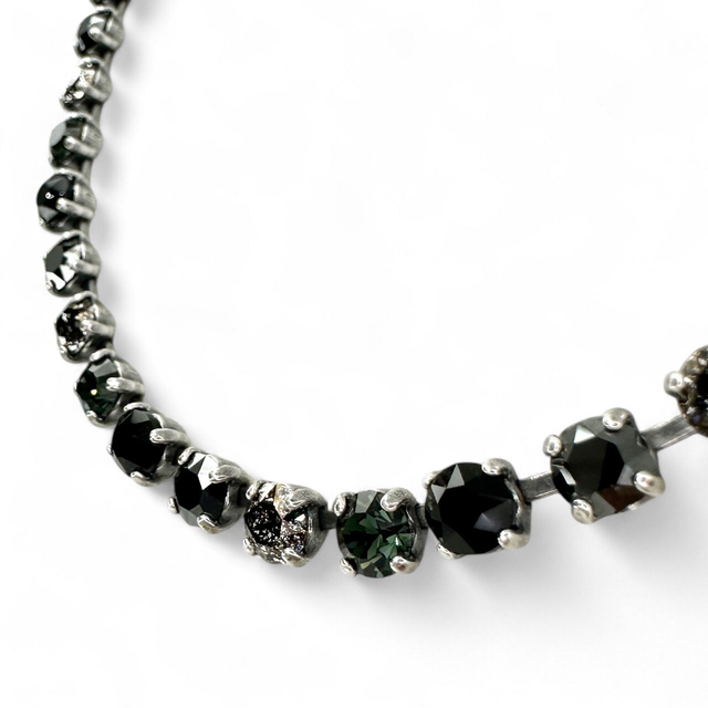 Collier DEVA KLASSIK, Länge einstellbar 36 - 46 cm mit handgesetzten Glaskristallen 6 mm im Brillantfacettenschliff, Farbe: Blackpatinamix, Schwarz in antikversilberter Fassung, dunkel -