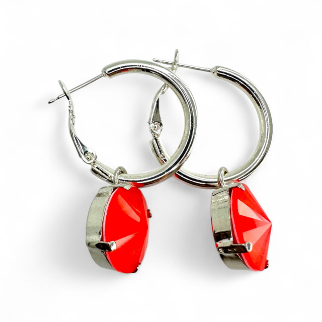 Creole 22 mm mit RIVOLI 14 in silberfarbener Fassung, Farbe Electric Red, Rot, Gesamtlänge ca. 36 mm - Deva Design Schmuck ist nickelfrei - enjoy the beauty!