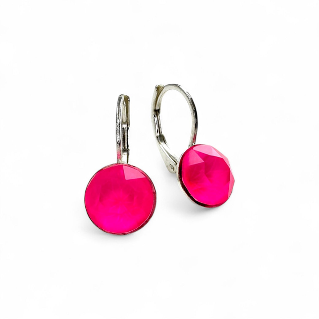 Ohrhänger ONE mit 1 Chaton-Stein im Brillantfacettenschliff 8 mm, Farbe Electric Pink, in versilberter Fassung - Deva Design Schmuck ist nickelfrei - enjoy the beauty!